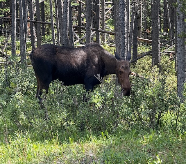 The drive back from Maligne Lake after the cruise to the campground was scenic as well. It’s known as a good spot to see wildlife and it did not disappoint – a young eagle, bighorn sheep, and a moose.
