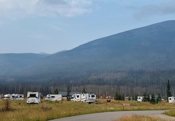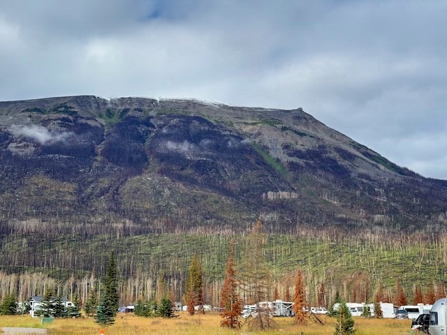 Whistler’s was not spared by the fire. Most of the trees and some structures had burned. Crews had worked diligently to remove downed trees and reopen the campground as soon as they could. Some campsites were reserved for work crews and displaced Jasper residents.