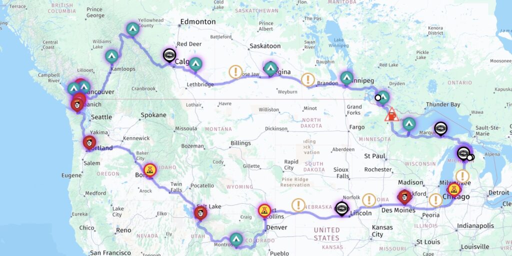 It is time for a long trip this year. How about the Canadian Rockies and beyond? Here’s our planned route: